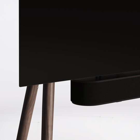 En funktionell design som låter dig gömma dina enheter bakom TV:n, vilket eliminerar nästan allt kabeltrassel.